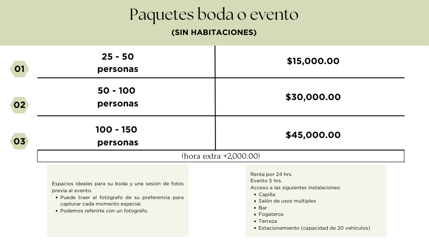 La renta incluye únicamente el uso del espacio. Sin embargo, podemos referirlos con proveedores para la organización de sus eventos.